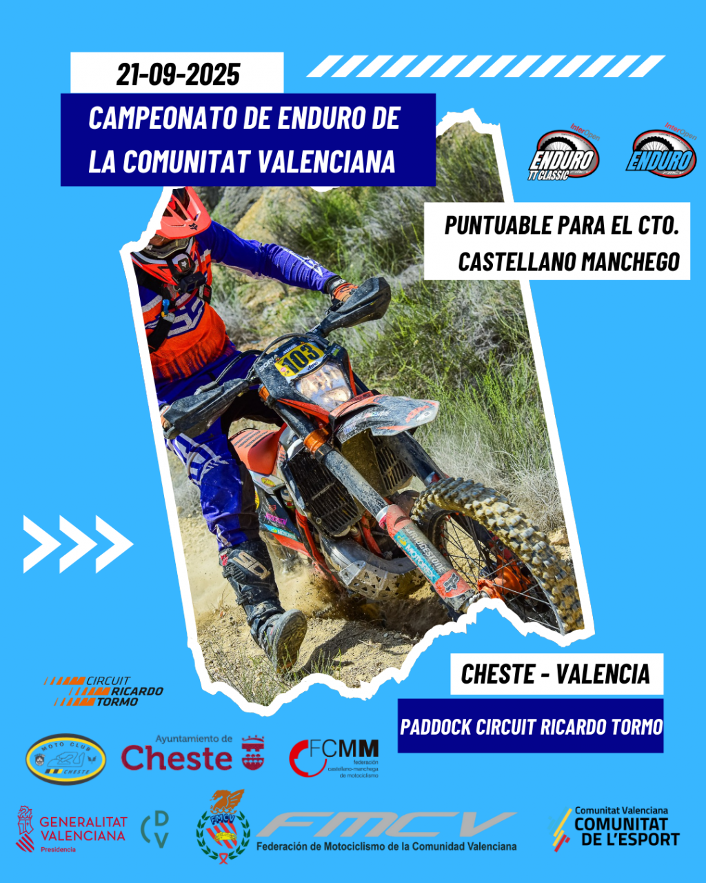 El MC Cheste y la Federación de Motociclismo de la Comunitat Valenciana están preparando una carrera espectacular para este domingo, 21 de septiembre. La cita, que también será puntuable para el Campeonato de Enduro de Castilla La Mancha, tendrá el paddock ubicado en el parking del Circuit Ricardo Tormo aprovechando así todas las comodidades que éste puede ofrecer.